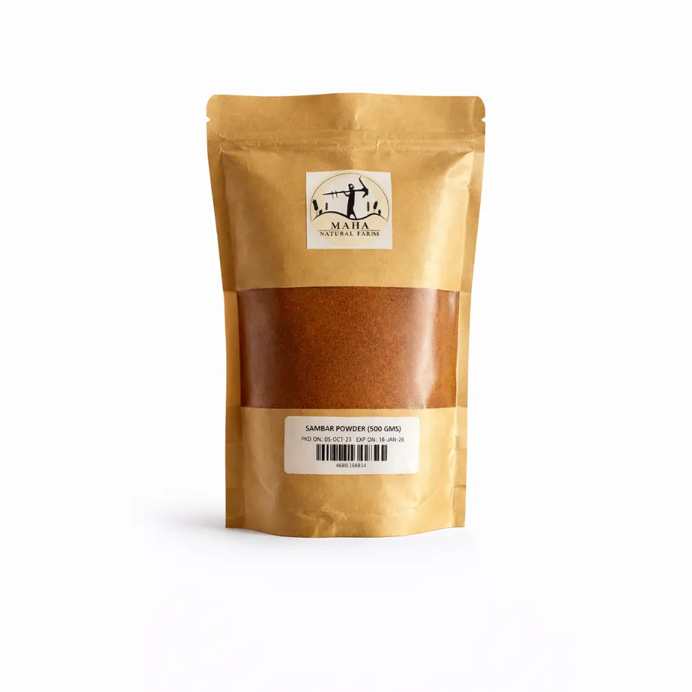- Sambar Powder is packed with care to ensure uniform quality and long-lasting freshness.